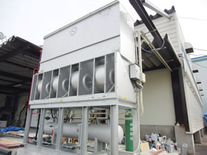 震災復興事業 (津波で壊された建物) (石巻市の様子) 宮城県石巻市S食品 2011年3月11日の東日本大震災で津波に流された建物を早期復旧し地元産業を取り戻す為、冷蔵庫の復旧事業を行いました。 【工事期間】 H24年1月~H24年5月 【工事規模】 冷蔵庫(26m*30.2m*6.7m) 2,000ton -40℃ 凍結庫(5m*10m*7m) 10ton -35℃ 冷凍機蒸発器/エバコン