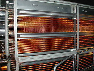 凝縮器は、蒸発式凝縮器を採用、又冷却器はCO2専用高効率冷却器を開発しました。