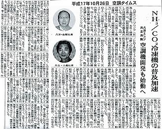 そこでオゾン層も破壊せず、地球温暖化にもほとんど関与しない冷媒として炭化水素類、アンモニア、二酸化炭素、水、空気等の自然冷媒が再検討されるようになりました。